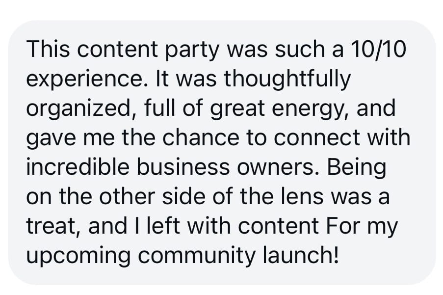 The Event is designed to provide participants with opportunities to create photo and video content for their business. The Host will provide designated spaces, setups, and support for content creation. Participants are responsible for their own materials, products, or services being showcased.